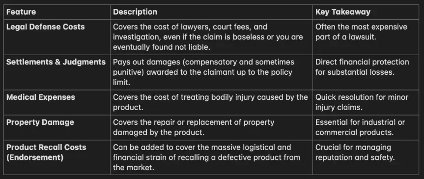 A robust PI insurance policy is tailored to your specific product and industry. Here is a general breakdown of what you can expect: